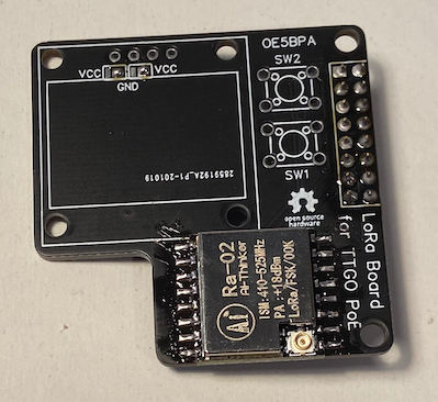 Nun könnt ihr zwei Distanzbolzen und zwei Muttern verwenden um auf der Seite des Ethernet-Anschlusses Füße anzubringen. Danach könnt ihr die restlichen Distanzbolzen verwenden um das LoRa Board auf dem PoE Board zu befestigen. Zieht die Bolzen aber nicht gleich ganz fest an - hier spießt es oft zwischen den Boards. Leichter ist es sie später an zu ziehen. Mit Muttern wird auch das LoRa Board befestigt.