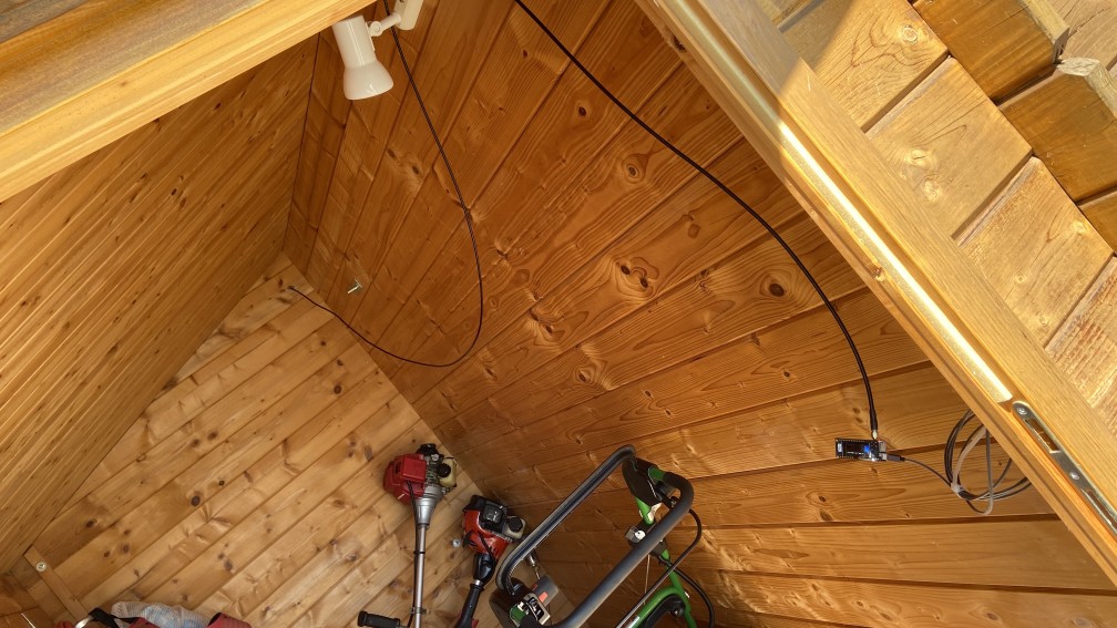 A 5 meter antenna wire was used to connect the antenna with the TTGO LoRa32 V2 board. Currently everything is just hangig around.